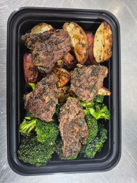 Tender bistro steak tips marinated in a blend of fresh herbs, roasted garlic, olive oil, then grilled to perfection for a flavorful, melt-in-your-mouth bite. Served with lemon herb roasted potatoes and roasted garlic broccoli.